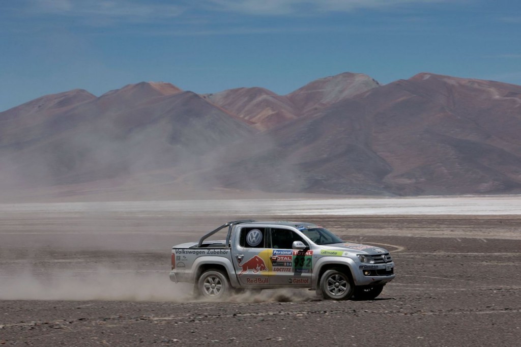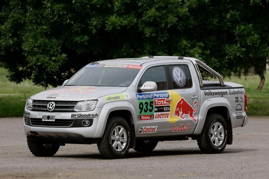 El coche utilizado por el equipo de Carlos Sainz para esta labor de Sancho Panza ha sido el Amarok, un pick-up que se va a poner a la venta este año y que con esta gesta hace una demostración de fiabilidad y dureza. Los coches de apoyo de Volkswagen eran casi de serie, aunque obviamente han sido necesarias modificaciones para cumplir con las exigencias de la prueba, requeridas además por la organización. Entre otras cosas, llevan sistemas de radio, un GPS completo profesional más preciso que los de los competidores, bacquéts OMP y una jaula antivuelco, elemento muy útil en una prueba tan extrema como el Dakar.