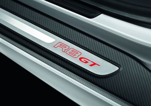 Estéticamente hay infinidad de elementos que delatan lo singular de esta edición. Las siglas GT en rojo montadas sobre las aletas delanteras, las ópticas LED, que emplean diodos para todas sus funciones, de serie en el R8 GT, la nueva parrilla, con varillas en titanio gris mate con fondo en negro mate o las carcasas de los retrovisores exteriores, también en fibra de carbono y unidas a la carrocería con unos soportes de aluminio son sólo algunos de ellos.