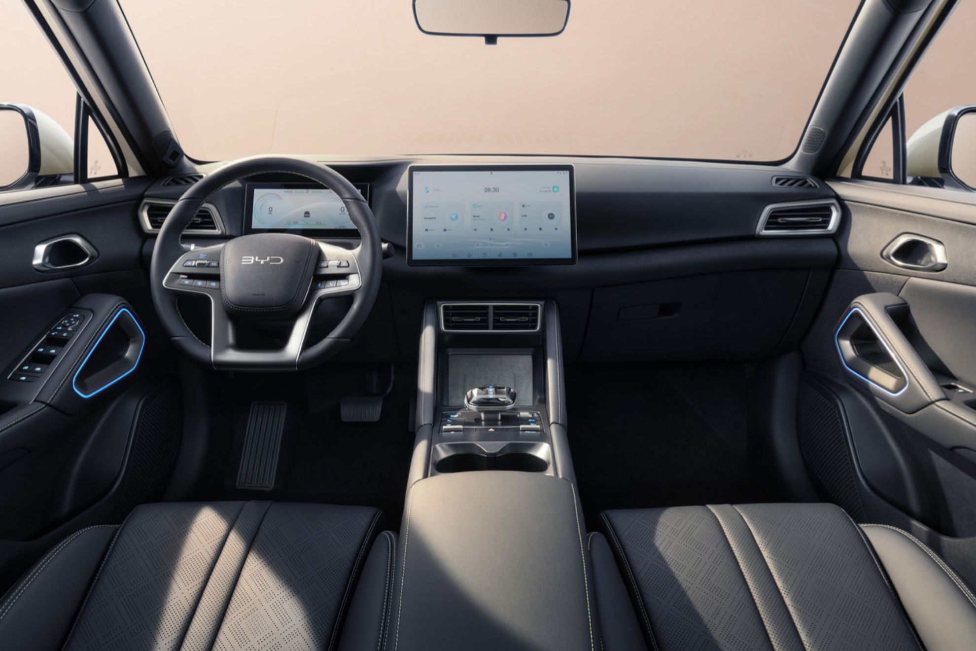 En el interior, el ATTO 2 combina un estilo elegante con un toque deportivo. Su habitáculo cuenta con una tapicería sencilla pero elegante junto con unos asientos de cuero vegano y eléctricamente ajustables que permiten una conducción cómoda y ergonómica para los clientes.