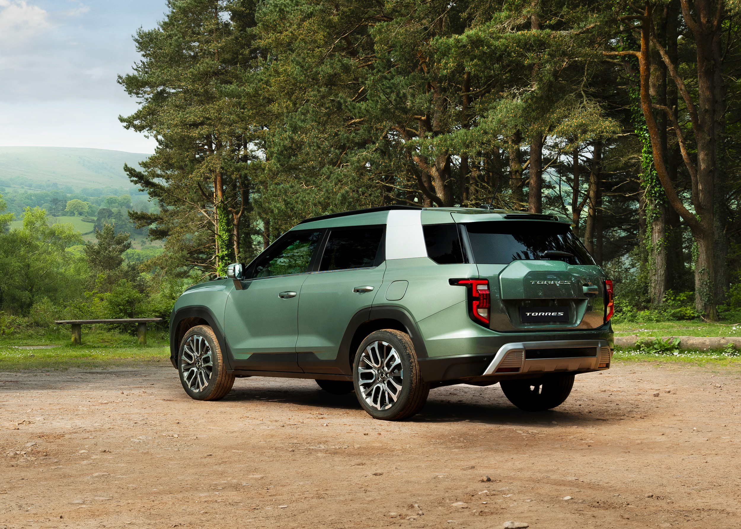 Con una estética musculosa y atractiva que bebe de la filosofía de diseño Powered by Toughness, el KGM Torres tiene una fuerte personalidad con esa esencia de todo terreno que siempre ha tenido la marca. En el lateral destacan los voluminosos pasos de rueda, con llantas de hasta 20 pulgadas. Y en la parte posterior, no pasa desapercibido el portón con forma hexagonal, una reminiscencia a la cubierta de repuesto alojada en esa zona de los míticos 4×4 que le aporta robustez.