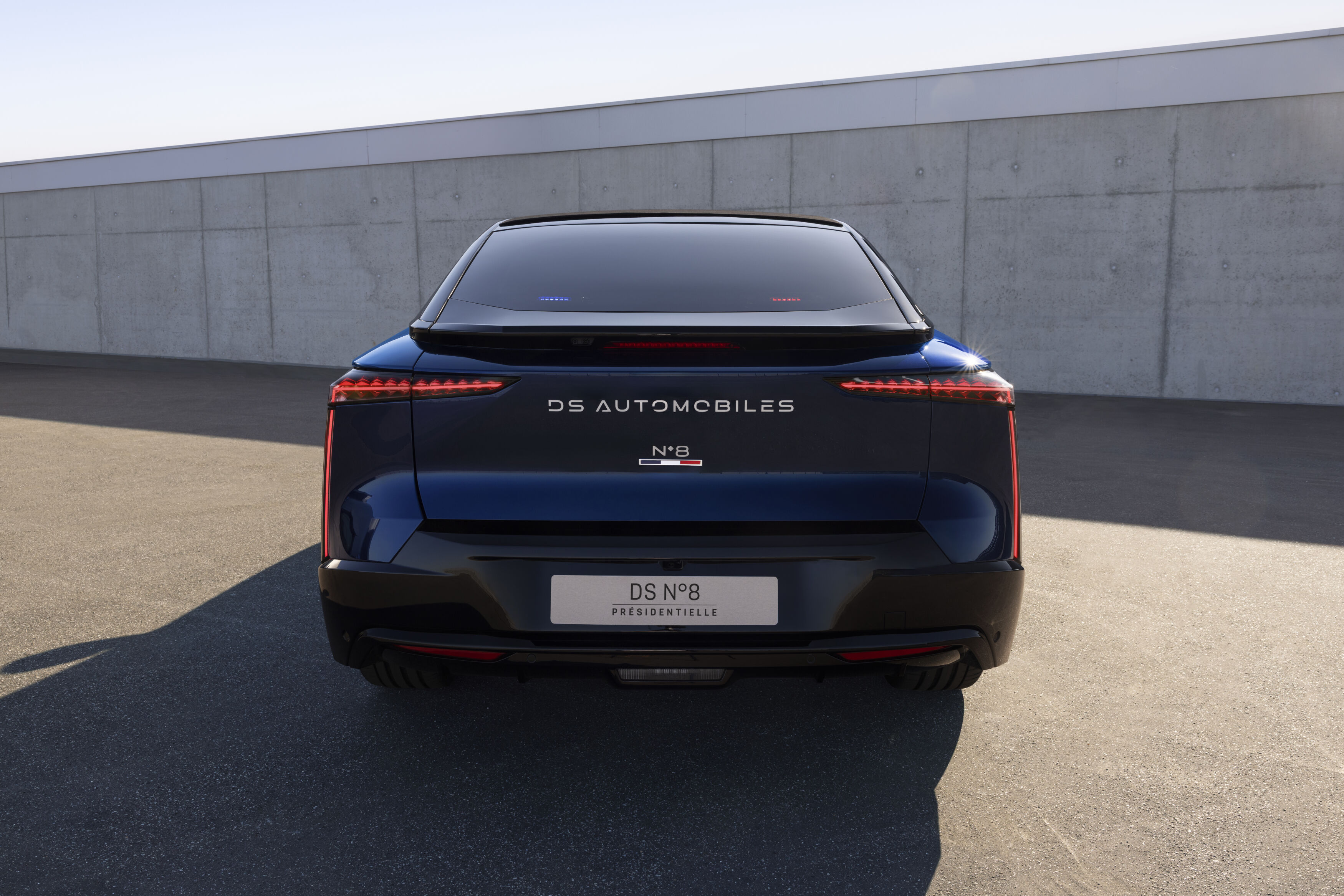 El DS N°8 PRÉSIDENTIELLE, en el día del 80 aniversario de la Victoria del 8 de mayo de 1945, continúa la línea de modelos DS especiales aclamados por la Presidencia de la República desde hace casi 70 años. Al igual que la ceremonia de apertura de los Juegos Olímpicos de 2024, que conecta pasado y presente, con 750 km de autonomía eléctrica, el Presidencial N°8 se presenta antes de su lanzamiento combinando artesanía excepcional y espíritu vanguardista, siempre con un sentido de la excelencia» afirma Xavier Peugeot, Director General de DS Automobiles.