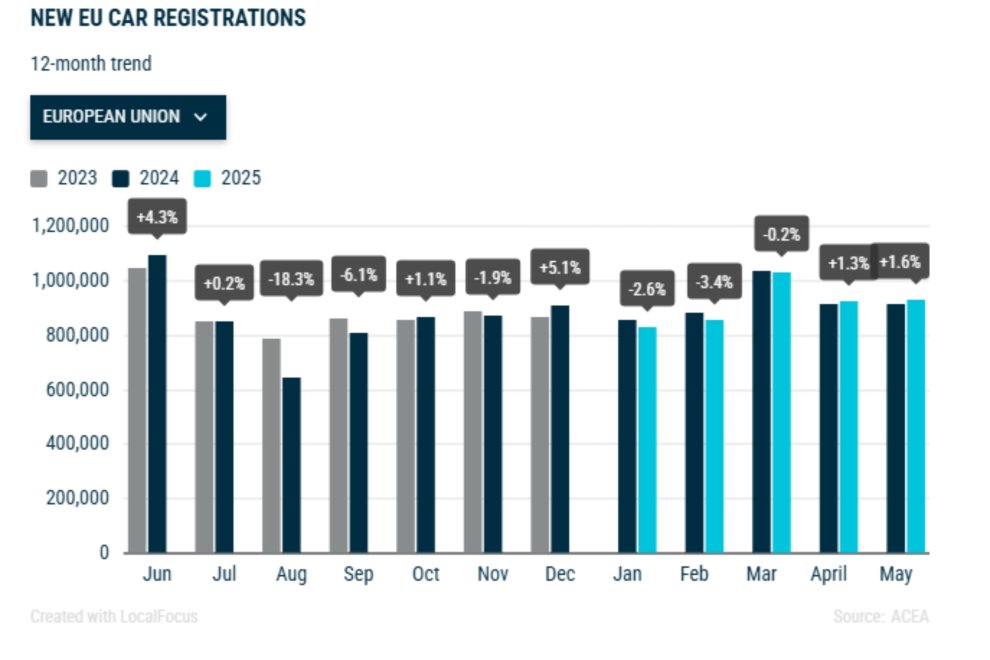 Sin embargo, mayo ha dejado un pequeño respiro. Durante el quinto mes del año, las ventas en la Unión Europea crecieron un 1,6% en términos interanuales, hasta alcanzar las 926.582 unidades. Con este dato, el mercado europeo encadena dos meses consecutivos al alza, tras el leve repunte del 1,3% registrado en abril. Un hilo de esperanza que, pese a su tibieza, podría anticipar una segunda mitad del año algo más dinámica, si se consolidan ciertos factores macroeconómicos y la confianza del consumidor mejora.