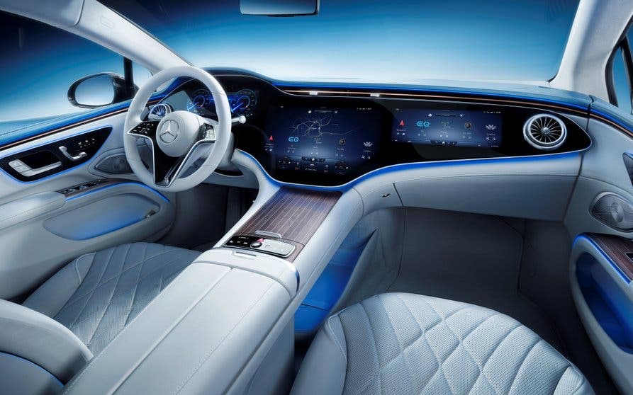 Se trata de un enorme panel de cristal que ocupa prácticamente todo el ancho del salpicadero, integrando tres pantallas diferenciadas: una para el conductor, otra central y otra para el acompañante. Todo ello gestionado por una inteligencia artificial capaz de aprender de los hábitos del usuario para anticiparse a sus necesidades.