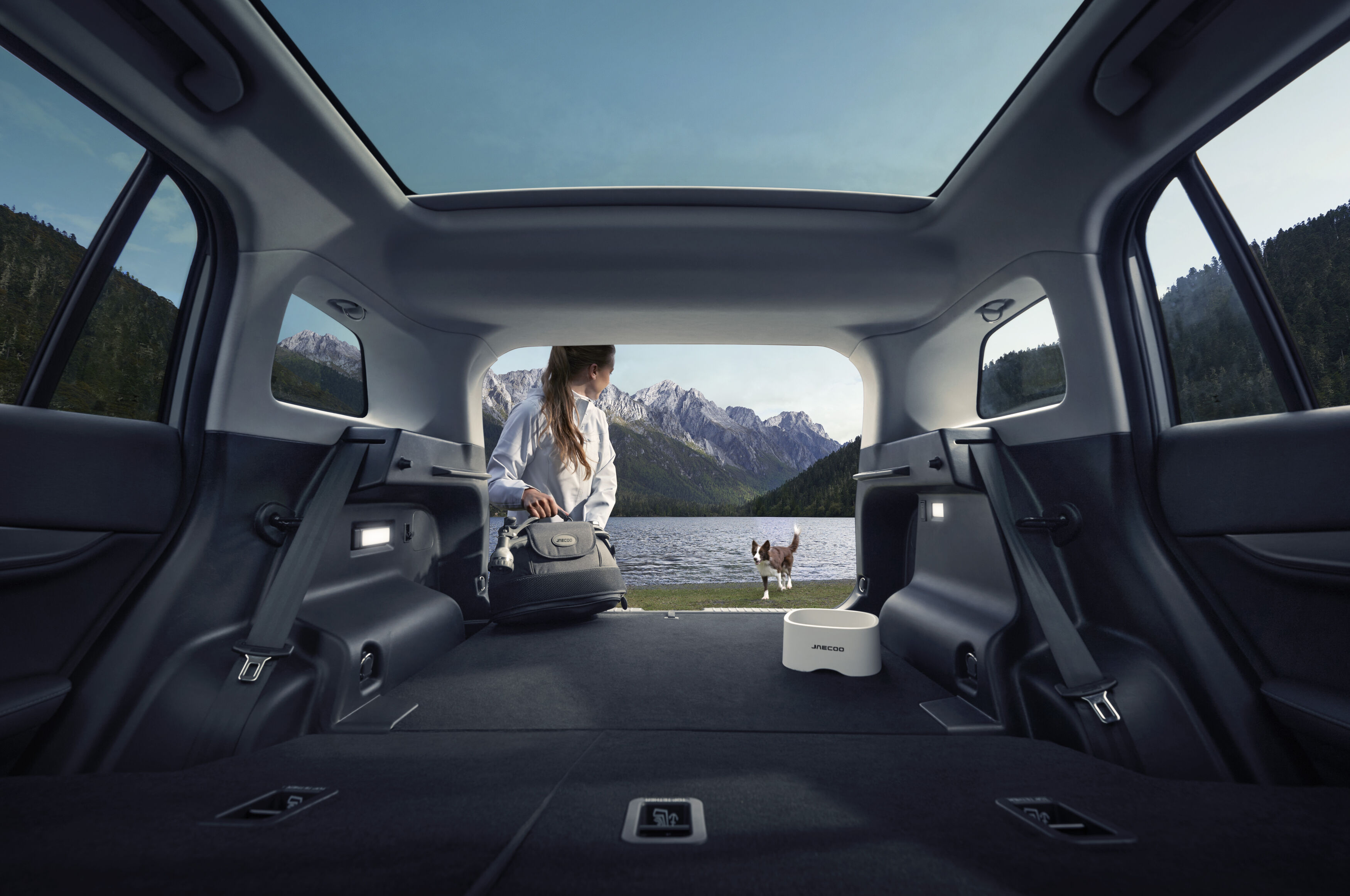 Uno de los aspectos más llamativos del nuevo jaecoo 5 es su interior, certificado como “Pet-Friendly Cabin” por TÜV Rheinland, algo inédito en el mercado europeo. Esta certificación garantiza el uso de materiales antibacterianos, resistentes a los arañazos y fáciles de limpiar, lo que lo convierte en una opción muy atractiva para familias con mascotas.