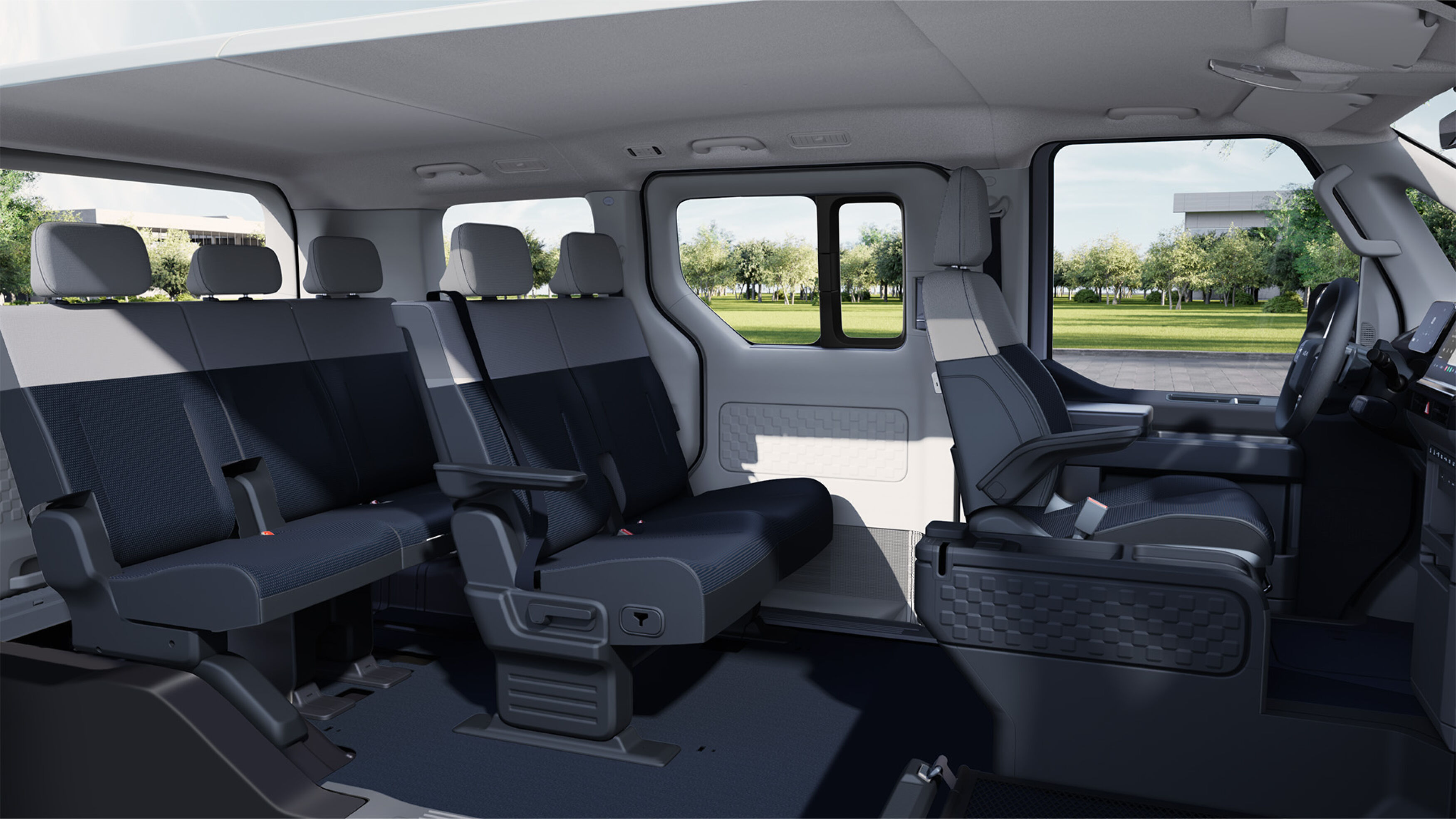 Pensado para transporte compartido, ocio y familia, combina un diseño elegante y robusto inspirado en los SUV. Su interior de tres filas ofrece configuraciones modulares: la disposición 2-3-0 deja espacio para equipaje o acampadas, mientras que los asientos de la segunda fila se pueden plegar.